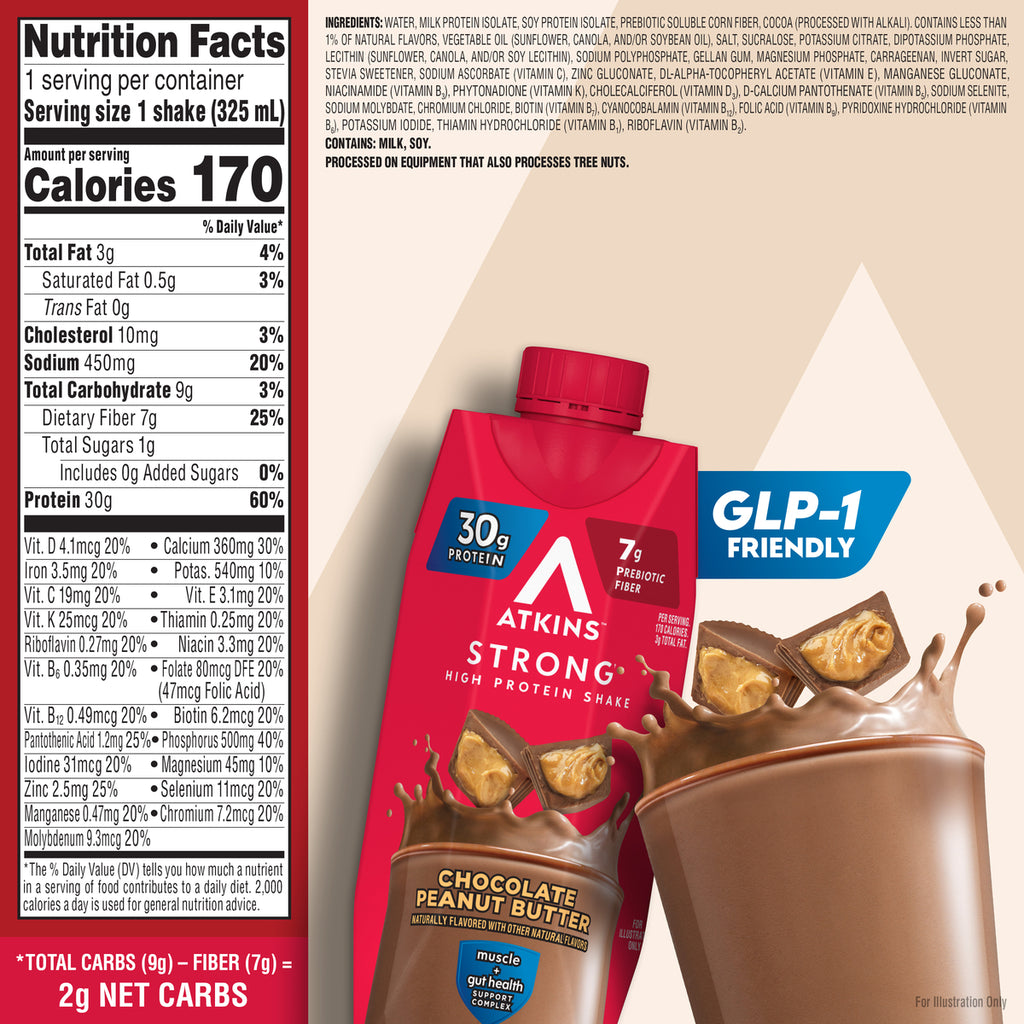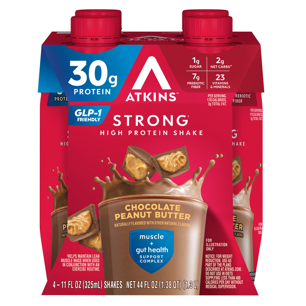 Fuel your body with Atkins Nutritionals Strong Protein & Fiber Ready-to-Drink Shakes, designed to support muscle and gut health. Each shake is packed with high-quality protein, essential vitamins and minerals, and prebiotic fiber, making it a perfect on-the-go nutrition option.