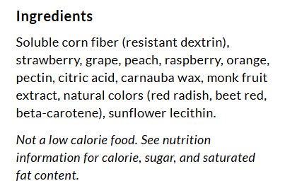 - Only 1g net carb per 11 fruit snacks