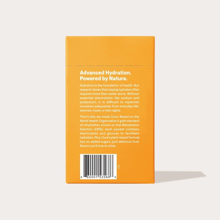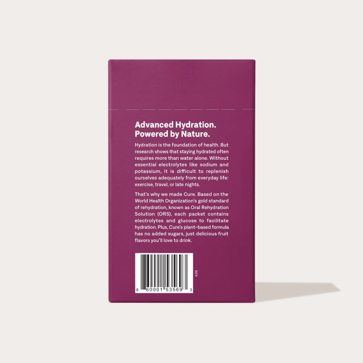Stay hydrated the smarter way with Cure Hydration Electrolyte Drink Mix—a plant-based formula crafted with real ingredients, zero added sugar, and WHO-aligned electrolyte ratios for effective rehydration.