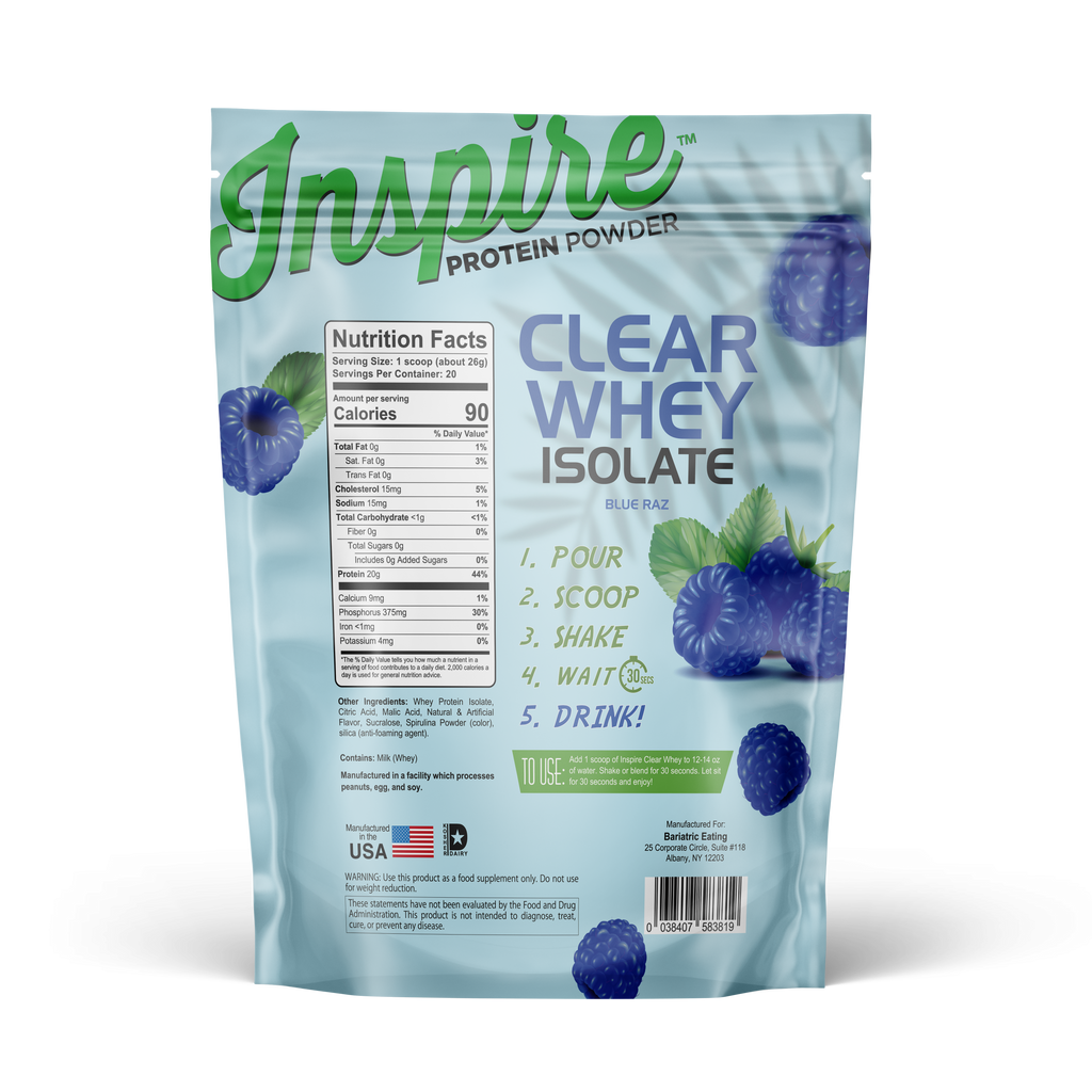 Whether you’re post-op, in the gym, or just need a protein boost on a hot day, Inspire Clear Whey Protein – Blue Razz makes staying on track simple and satisfying.