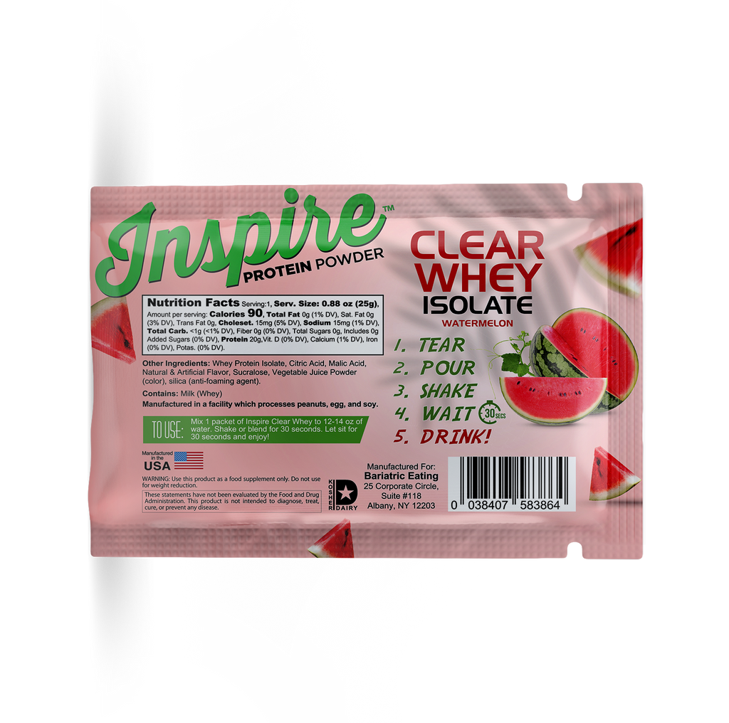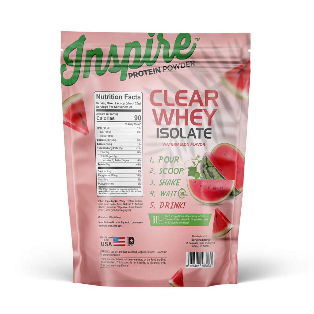 Whether you're recovering from surgery, managing your macros, or just want a delicious way to hydrate and fuel up, Inspire Clear Whey – Watermelon is your go-to sip.
