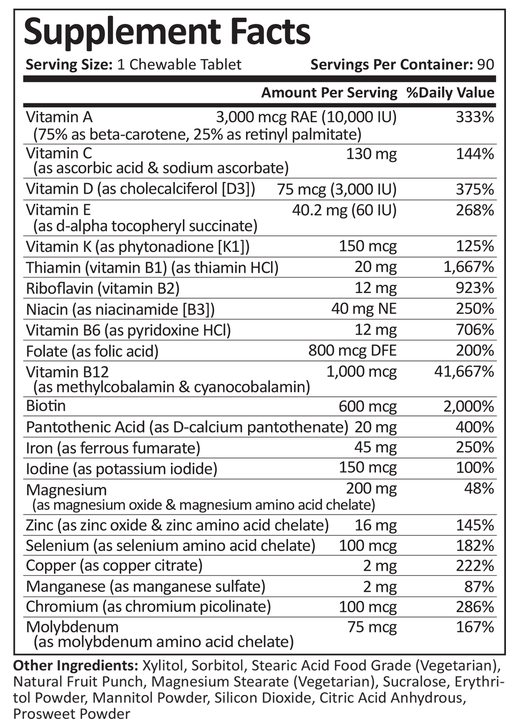 - Once a day Bariatric Multivitamin Chewable with 45mg of iron