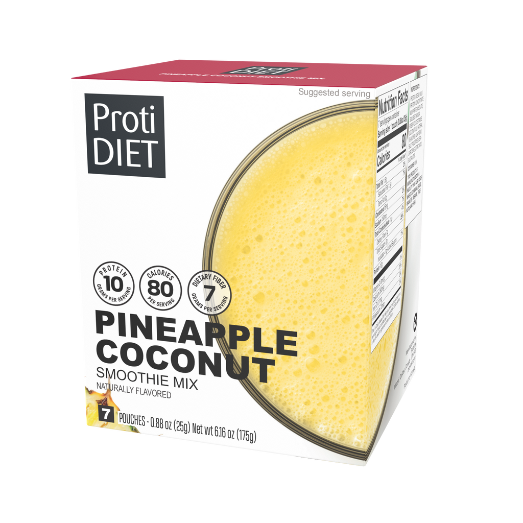 Bring a taste of the tropics to your healthy routine with Proti Diet’s Pineapple Coconut Smoothie Mix! Each creamy, refreshing sip combines the bright tang of pineapple with smooth coconut flavor for a deliciously balanced, low-calorie protein boost.