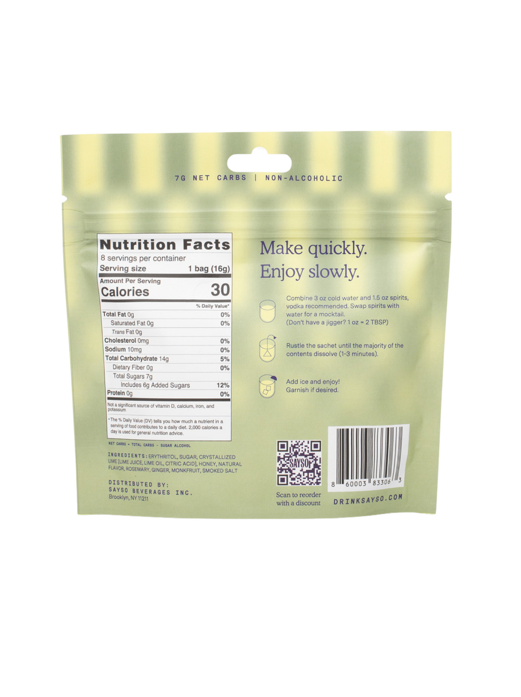 SAYSO is the first-ever cocktail (or mocktail) tea bag. Just combine COLD water and spirits, infuse, and enjoy!